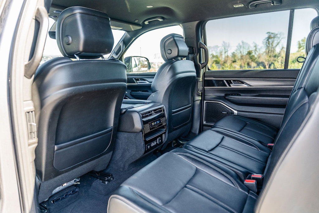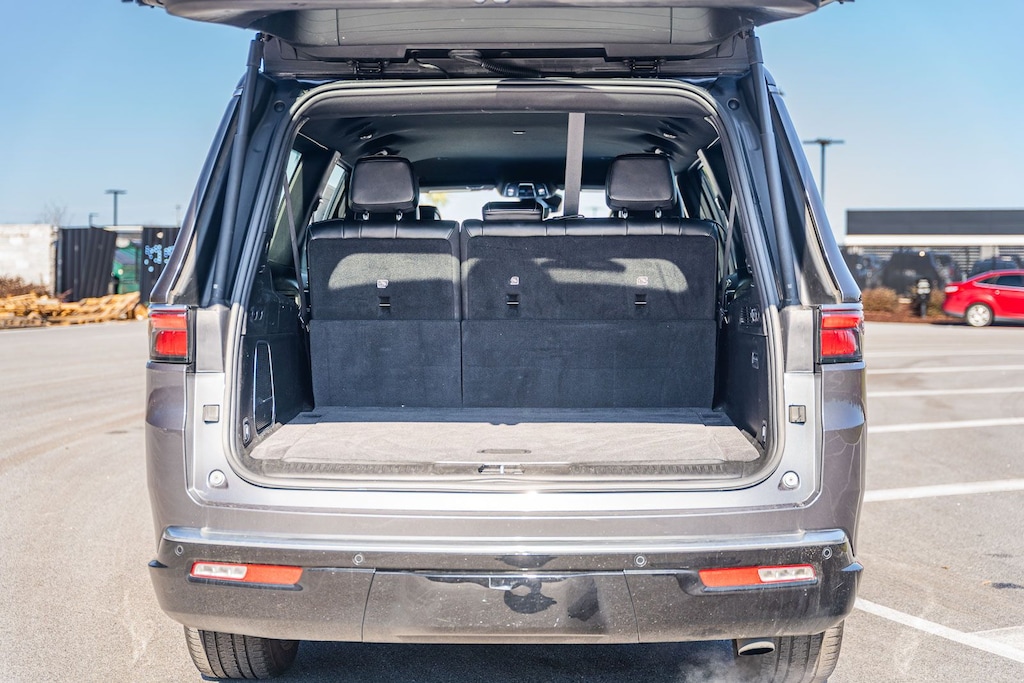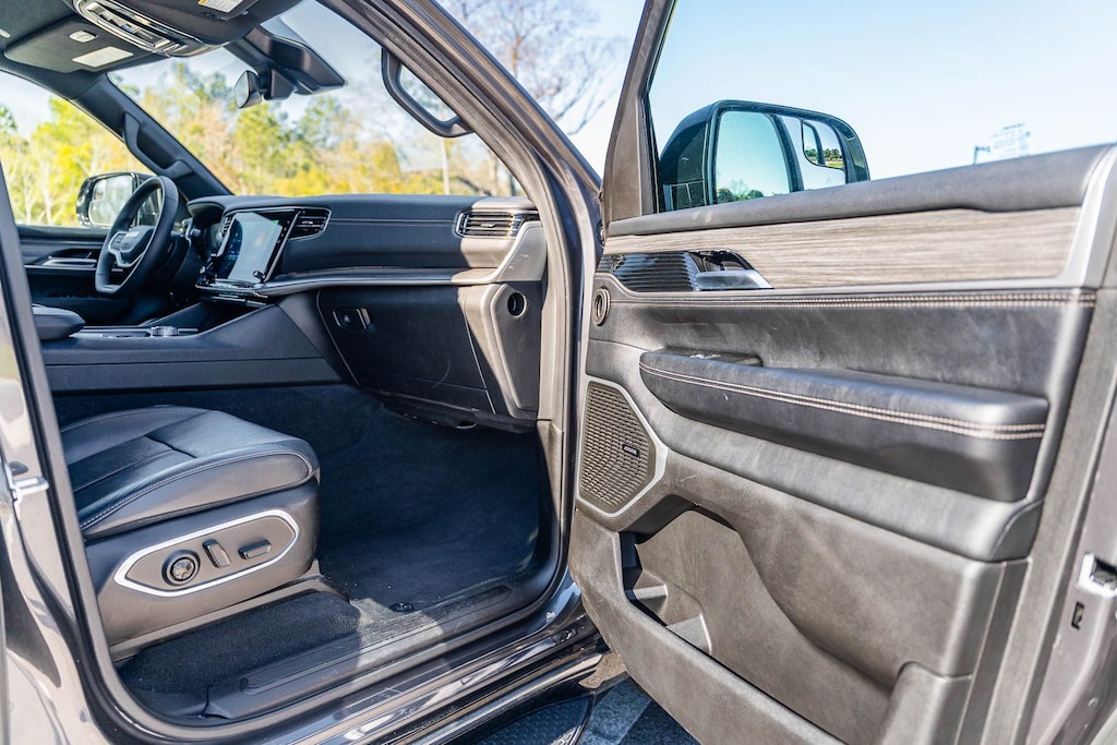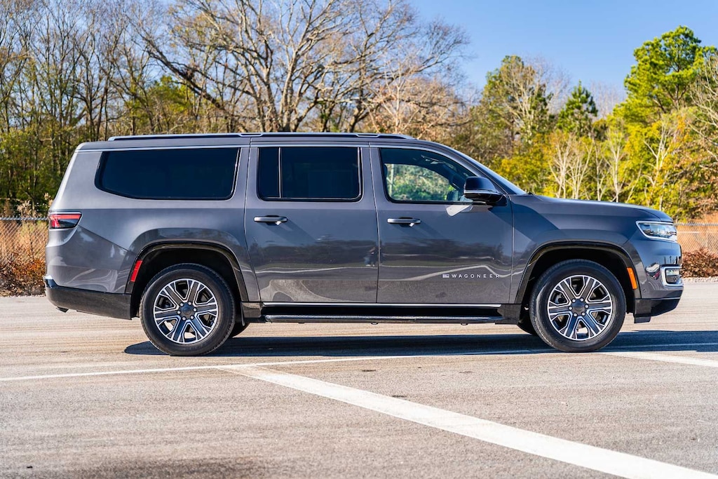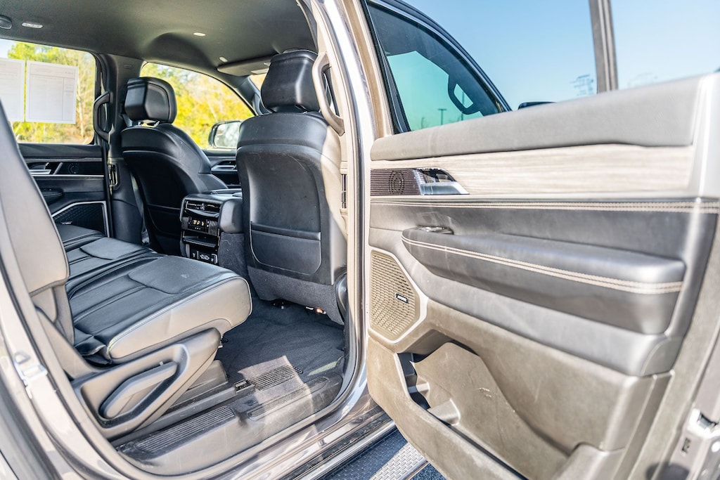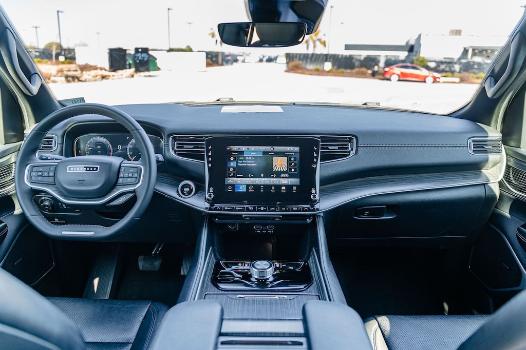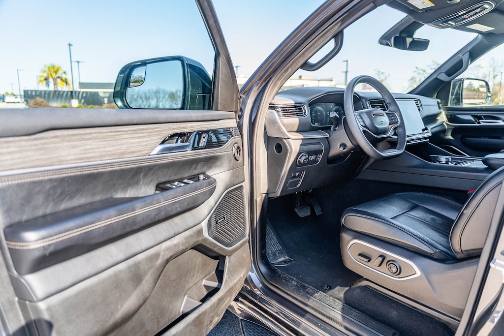 This Wagoneer L Series II includes Quick Order Package 25J, 10 Speakers, 3.55 Rear Axle Ratio, 3rd row seats: bench, 4-Wheel Disc Brakes, 8-Passenger Seating, ABS brakes, Adjustable pedals, Air Conditioning, Alloy wheels, AM/FM radio: SiriusXM with 360L, Anti-whiplash front head restraints, Apple CarPlay/Android Auto, Audio memory, Auto-dimming door mirrors, Auto-dimming Rear-View mirror, Auto-leveling suspension, Automatic temperature control, Brake assist, Bumpers: body-color, Compass, Delay-off headlights, Driver door bin, Driver vanity mirror, Driver's Seat Mounted Armrest, Dual front impact airbags, Dual front side impact airbags, Electronic Stability Control, Emergency communication system: Wagoneer Connect, Exterior Parking Camera Rear, Four wheel independent suspension, Front anti-roll bar, Front Bucket Seats, Front Center Armrest w/Storage, Front dual zone A/C, Front fog lights, Front reading lights, Full Length Floor Console, Fully automatic headlights, Garage door transmitter, Genuine wood console insert, Genuine wood dashboard insert, Genuine wood door panel insert, Heated door mirrors, Heated front seats, Heated steering wheel, Illuminated entry, Knee airbag, Leather Trimmed Bucket Seats, Low tire pressure warning, Memory seat, Navigation System, Normal Duty Suspension, Occupant sensing airbag, Outside temperature display, Overhead airbag, Overhead console, Panic alarm, Passenger door bin, Passenger seat mounted armrest, Passenger vanity mirror, Pedal memory, Power adjustable front head restraints, Power door mirrors, Power driver seat, Power Liftgate, Power passenger seat, Power steering, Power windows, Radio data system, Radio: Uconnect 5 Nav w/10.1" Display, Rain sensing wipers, Rear air conditioning, Rear anti-roll bar, Rear reading lights, Rear seat center armrest, Rear window defroster, Rear window wiper, Reclining 3rd row seat, Remote keyless entry, Security system, Speed control, Speed-sensing steering, Speed-Sensitive Wipers, Split folding rear seat, Steering wheel memory, Steering wheel mounted audio controls, Tachometer, Telescoping steering wheel, Tilt steering wheel, Traction control, Trip computer, Turn signal indicator mirrors, Variably intermittent wipers, Ventilated front seats, Voltmeter, and Wheels: 20" x 9.0" Premium 2 Aluminum . While every effort has been made to ensure display of accurate data, the vehicle listings within this web site may not reflect all accurate vehicle items. All Inventory listed is subject to prior sale. The vehicle photo displayed may be an example only. Pricing throughout the web site does not include any options that may have been installed at the dealership. Please see the dealer for details. Vehicles may be in transit or currently in production. Some vehicles are shown with optional equipment. See the actual vehicle for complete accuracy of features, options & pricing. Because of the numerous possible combinations of vehicle models, styles, colors and options, the vehicle pictures on this site may not match your vehicle exactly; however, it will match as closely as possible. Some vehicle images shown are stock photos and may not reflect your exact choice of vehicle, color, trim and specification. Not responsible for pricing or typographical errors. Virtual Inventory, Available Configurations and In-Transit inventory contains vehicles that have not actually been manufactured. These vehicles show consumers sample vehicles that may be available. Pricing, Options, Color, and other data pertaining to these vehicles are provided for example only. All information pertaining to these vehicles should be independently verified through the dealer.