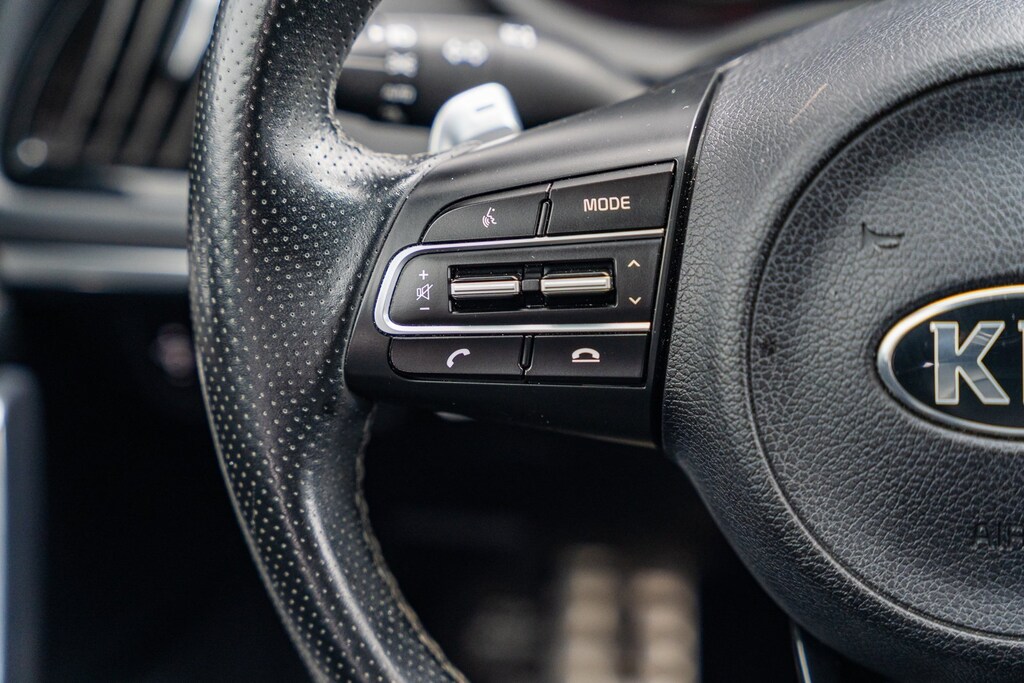 This vehicle comes equipped with 4-Wheel Disc Brakes, 6 Speakers, ABS brakes, Air Conditioning, Alloy wheels, AM/FM radio: SiriusXM, Anti-whiplash front head restraints, Apple CarPlay & Android Auto, Auto-dimming Rear-View mirror, Automatic temperature control, Brake assist, Bumpers: body-color, Cargo Tray, Delay-off headlights, Driver door bin, Driver vanity mirror, Dual front impact airbags, Dual front side impact airbags, EC Mirror w/Compass & HomeLink, Electronic Stability Control, Emergency communication system: UVO eServices, Exterior Parking Camera Rear, Four wheel independent suspension, Front anti-roll bar, Front Bucket Seats, Front Center Armrest, Front dual zone A/C, Front reading lights, Fully automatic headlights, Heated door mirrors, Heated Front Bucket Seats, Heated front seats, Illuminated entry, Knee airbag, Leather Seat Trim, Low tire pressure warning, Occupant sensing airbag, Outside temperature display, Overhead airbag, Overhead console, Panic alarm, Passenger door bin, Passenger vanity mirror, Power door mirrors, Power driver seat, Power steering, Power windows, Puddle Lamp, Radio: AM/FM/MP3/HD/SiriusXM Audio System, Rear air conditioning, Rear anti-roll bar, Rear seat center armrest, Rear window defroster, Remote keyless entry, Remote Start (Push-Button Start), Security system, Speed control, Speed-Sensitive Wipers, Split folding rear seat, Sport steering wheel, Steering wheel mounted audio controls, Tachometer, Telescoping steering wheel, Tilt steering wheel, Traction control, Trip computer, Turn signal indicator mirrors, Variably intermittent wipers, and Wheels: 8.0J x 18 Alloy.