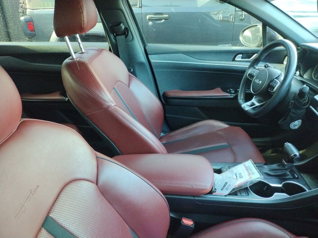 This K5 GT-Line includes GT-Line Premium Package (Forward Collision Avoidance-Assist, Highway Driving Assist, LED Projection Headlamps, and Smart Cruise Control w/Stop & Go), GT-Line Red Interior Package, 4-Wheel Disc Brakes, 6 Speakers, ABS brakes, Air Conditioning, Alloy wheels, AM/FM radio: SiriusXM, Apple CarPlay & Android Auto, Auto High-beam Headlights, Automatic temperature control, Brake assist, Bumpers: body-color, Carpeted Floor Mats, Cloth/SynTex Seat Trim, Delay-off headlights, Driver door bin, Driver vanity mirror, Dual front impact airbags, Dual front side impact airbags, Electronic Stability Control, Four wheel independent suspension, Front anti-roll bar, Front Bucket Seats, Front Center Armrest, Front dual zone A/C, Front fog lights, Front reading lights, Fully automatic headlights, Heated door mirrors, Illuminated entry, Knee airbag, Low tire pressure warning, Navigation System, Occupant sensing airbag, Outside temperature display, Overhead airbag, Overhead console, Panic alarm, Passenger door bin, Passenger vanity mirror, Power door mirrors, Power driver seat, Power steering, Power windows, Radio data system, Radio: AM/FM/MP3 Audio System, Rear anti-roll bar, Rear seat center armrest, Rear side impact airbag, Rear window defroster, Remote keyless entry, Security system, Speed control, Speed-sensing steering, Split folding rear seat, Spoiler, Sport steering wheel, Steering wheel mounted audio controls, Tachometer, Telescoping steering wheel, Tilt steering wheel, Traction control, Trip computer, Turn signal indicator mirrors, Variably intermittent wipers, and Wheels: 18" Gloss Black Machined Finish Alloy . While every effort has been made to ensure display of accurate data, the vehicle listings within this web site may not reflect all accurate vehicle items. All Inventory listed is subject to prior sale. The vehicle photo displayed may be an example only. Pricing throughout the web site does not include any options that may have been installed at the dealership. Please see the dealer for details. Vehicles may be in transit or currently in production. Some vehicles are shown with optional equipment. See the actual vehicle for complete accuracy of features, options & pricing. Because of the numerous possible combinations of vehicle models, styles, colors and options, the vehicle pictures on this site may not match your vehicle exactly; however, it will match as closely as possible. Some vehicle images shown are stock photos and may not reflect your exact choice of vehicle, color, trim and specification. Not responsible for pricing or typographical errors. Virtual Inventory, Available Configurations and In-Transit inventory contains vehicles that have not actually been manufactured. These vehicles show consumers sample vehicles that may be available. Pricing, Options, Color, and other data pertaining to these vehicles are provided for example only. All information pertaining to these vehicles should be independently verified through the dealer. 27/37 City/Highway MPG