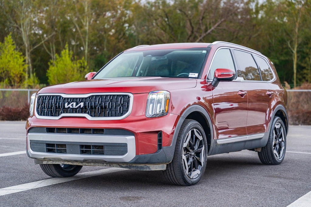 This Telluride EX includes EX Captain's Chair Package (2nd Row Captain Chairs), 3.510 Axle Ratio, 3rd row seats: split-bench, 4-Wheel Disc Brakes, 6 Speakers, ABS brakes, Air Conditioning, Alloy wheels, AM/FM radio: SiriusXM, Apple CarPlay & Android Auto, Auto High-beam Headlights, Auto-dimming Rear-View mirror, Automatic temperature control, Brake assist, Bumpers: body-color, Carpet Floor Mats, Compass, Delay-off headlights, Driver door bin, Driver vanity mirror, Dual front impact airbags, Dual front side impact airbags, Electronic Stability Control, Emergency communication system: 911 Connect, Exterior Parking Camera Rear, Four wheel independent suspension, Front anti-roll bar, Front Bucket Seats, Front Center Armrest, Front dual zone A/C, Front reading lights, Fully automatic headlights, Heated & Ventilated Front Bucket Seats, Heated door mirrors, Heated front seats, Illuminated entry, Knee airbag, Leather Seat Trim, Leather Shift Knob, Leather steering wheel, Low tire pressure warning, Navigation System, Occupant sensing airbag, Outside temperature display, Overhead airbag, Overhead console, Panic alarm, Passenger door bin, Passenger vanity mirror, Power door mirrors, Power driver seat, Power Liftgate, Power moonroof, Power passenger seat, Power steering, Power windows, Radio data system, Radio: AM/FM Display Audio System, Rear air conditioning, Rear anti-roll bar, Rear audio controls, Rear reading lights, Rear seat center armrest, Rear side impact airbag, Rear window defroster, Rear window wiper, Reclining 3rd row seat, Remote keyless entry, Roof rack: rails only, Security system, Smart Key w/ Push Button and Remote Start, Speed control, Speed-sensing steering, Split folding rear seat, Spoiler, Steering wheel mounted audio controls, Tachometer, Telescoping steering wheel, Tilt steering wheel, Traction control, Trip computer, Turn signal indicator mirrors, Variably intermittent wipers, Ventilated front seats, and Wheels: 20" x 7.5" Black Finish . While every effort has been made to ensure display of accurate data, the vehicle listings within this web site may not reflect all accurate vehicle items. All Inventory listed is subject to prior sale. The vehicle photo displayed may be an example only. Pricing throughout the web site does not include any options that may have been installed at the dealership. Please see the dealer for details. Vehicles may be in transit or currently in production. Some vehicles are shown with optional equipment. See the actual vehicle for complete accuracy of features, options & pricing. Because of the numerous possible combinations of vehicle models, styles, colors and options, the vehicle pictures on this site may not match your vehicle exactly; however, it will match as closely as possible. Some vehicle images shown are stock photos and may not reflect your exact choice of vehicle, color, trim and specification. Not responsible for pricing or typographical errors. Virtual Inventory, Available Configurations and In-Transit inventory contains vehicles that have not actually been manufactured. These vehicles show consumers sample vehicles that may be available. Pricing, Options, Color, and other data pertaining to these vehicles are provided for example only. All information pertaining to these vehicles should be independently verified through the dealer. 20/26 City/Highway MPG