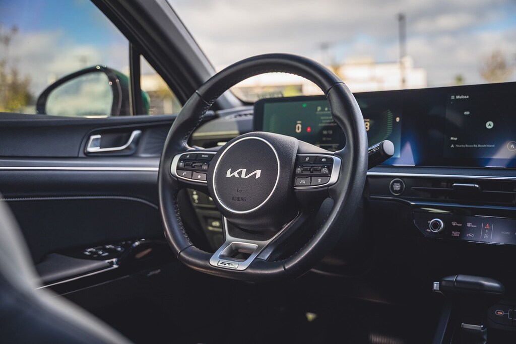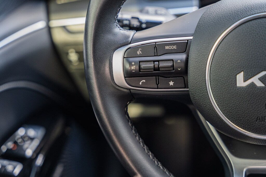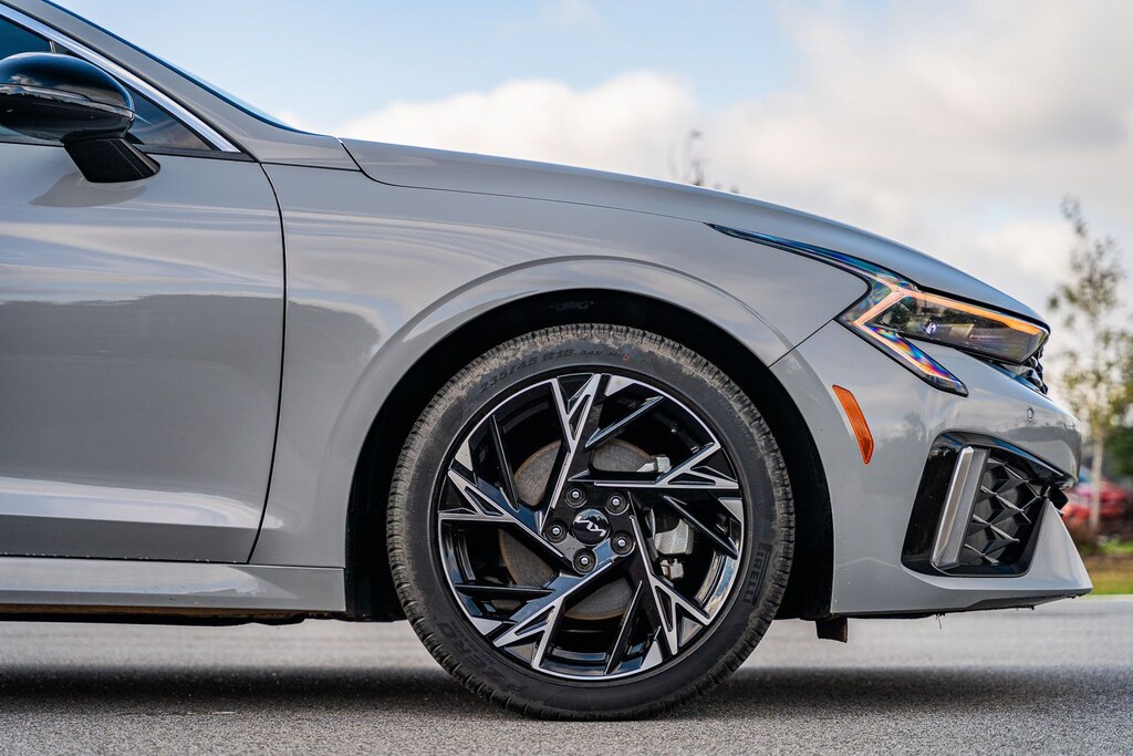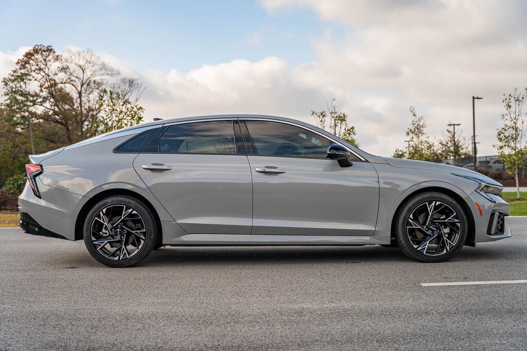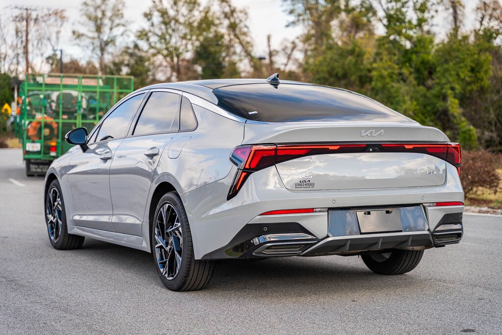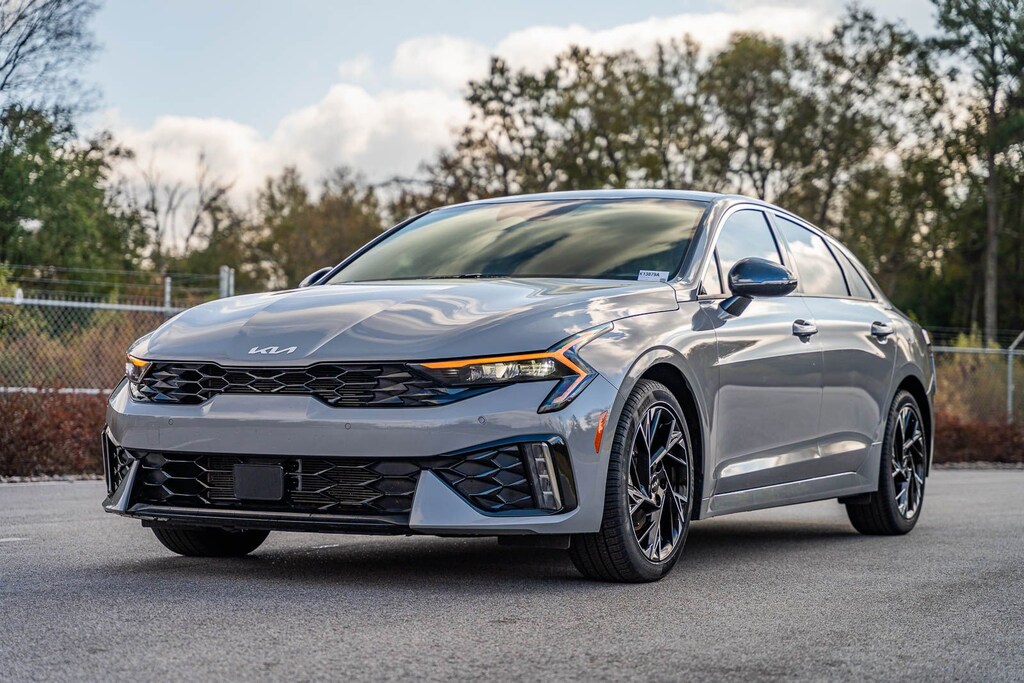 This K5 GT-Line includes GT-Line Premium Package (Active Sound Design, Bose Premium Audio, LED Interior Lighting, and Panoramic Sunroof), 4-Wheel Disc Brakes, 6 Speakers, ABS brakes, Air Conditioning, Alloy wheels, AM/FM radio: SiriusXM, Auto High-beam Headlights, Automatic temperature control, Brake assist, Bumpers: body-color, Carpeted Floor Mats, Delay-off headlights, Driver door bin, Driver vanity mirror, Dual front impact airbags, Dual front side impact airbags, Electronic Stability Control, Emergency communication system: Kia Connect (includes 1 year free trial), Four wheel independent suspension, Front anti-roll bar, Front Bucket Seats, Front Center Armrest, Front dual zone A/C, Front fog lights, Front reading lights, Fully automatic headlights, Heated door mirrors, Heated Front Bucket Seats, Heated front seats, Heated steering wheel, Illuminated entry, Knee airbag, Leather Shift Knob, Leather steering wheel, Low tire pressure warning, Navigation System, Occupant sensing airbag, Outside temperature display, Overhead airbag, Overhead console, Panic alarm, Passenger door bin, Passenger vanity mirror, Power door mirrors, Power driver seat, Power steering, Power windows, Radio data system, Radio: AM/FM Audio System, Rear anti-roll bar, Rear seat center armrest, Rear side impact airbag, Rear window defroster, Remote keyless entry, Security system, Speed control, Speed-sensing steering, Split folding rear seat, Sport steering wheel, Steering wheel mounted audio controls, Tachometer, Telescoping steering wheel, Tilt steering wheel, Traction control, Trip computer, Turn signal indicator mirrors, Variably intermittent wipers, and Wheels: 18" x 7.5J Gloss Black Machined Finish Alloy . While every effort has been made to ensure display of accurate data, the vehicle listings within this web site may not reflect all accurate vehicle items. All Inventory listed is subject to prior sale. The vehicle photo displayed may be an example only. Pricing throughout the web site does not include any options that may have been installed at the dealership. Please see the dealer for details. Vehicles may be in transit or currently in production. Some vehicles are shown with optional equipment. See the actual vehicle for complete accuracy of features, options & pricing. Because of the numerous possible combinations of vehicle models, styles, colors and options, the vehicle pictures on this site may not match your vehicle exactly; however, it will match as closely as possible. Some vehicle images shown are stock photos and may not reflect your exact choice of vehicle, color, trim and specification. Not responsible for pricing or typographical errors. Virtual Inventory, Available Configurations and In-Transit inventory contains vehicles that have not actually been manufactured. These vehicles show consumers sample vehicles that may be available. Pricing, Options, Color, and other data pertaining to these vehicles are provided for example only. All information pertaining to these vehicles should be independently verified through the dealer. 25/36 City/Highway MPG