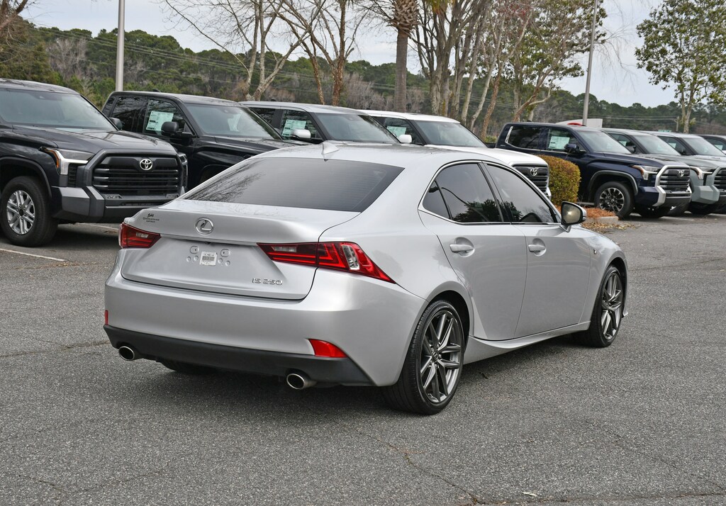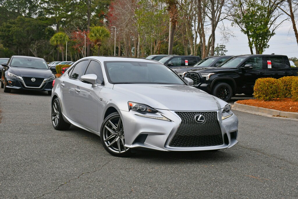 ***Stokes Toyota Hilton Head*** 2014 Lexus IS 250 in Silver Lining Metallic, factory Equipped With. Aluminum Sport Pedals, DVD Player, F Sport Nuluxe Seat Trim, F-Sport Badging, F-Sport Package, F-Sport Tuned Suspension, Glove Box w/Key, Heated Front Sport Seats, LED Headlamps, Lexus Enform, LFA Inspired TFT Instrumentation, Navigation Package, Rear Back-Up Camera, Silver Performance Trim, Sport Shift Knob, Sport Steering Wheel w/Paddles, Stainless Steel Scuff Plates, Telematics, Unique Front Fascia/Grille, Wheels: 18" F-Sport, XM NavTraffic/XM NavWeather.