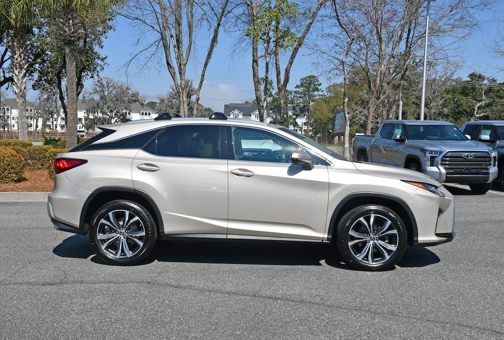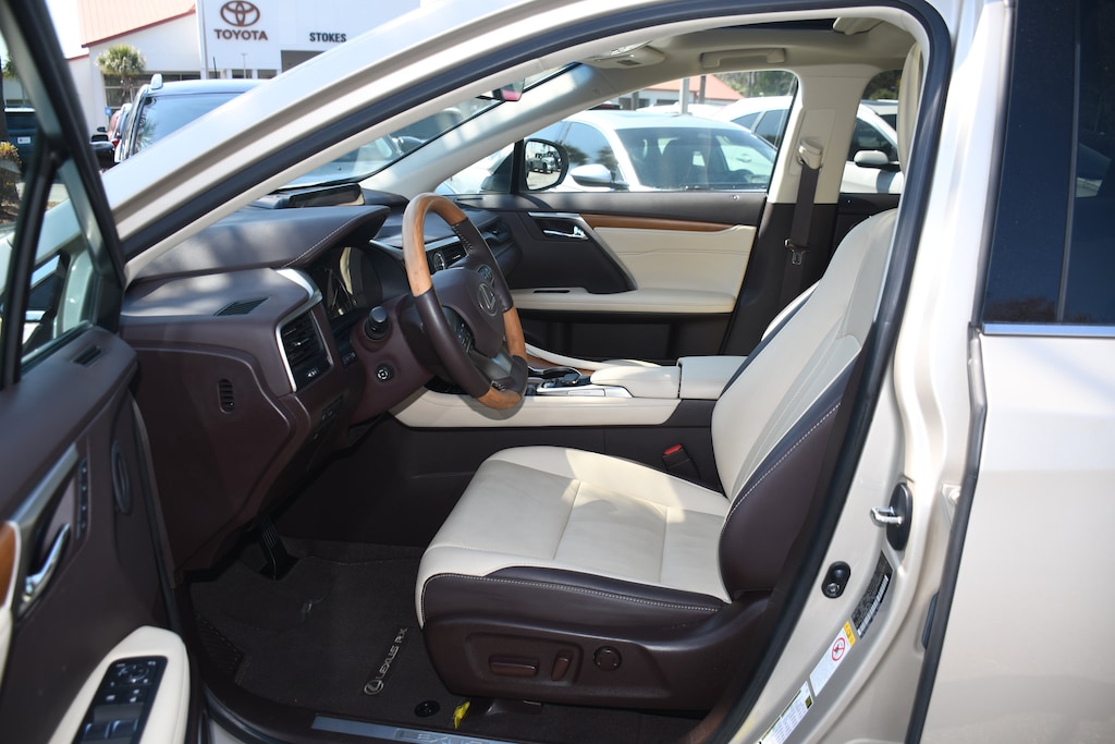 ***Stokes Toyota Hilton Head*** 2018 Lexus RX 350 in Satin Cashmere Metallic, Factory Equipped With: Leather Seats, Power Windows, Power Locks, Cruise Control, Remote Keyless Entry, 8-Way Power Drivers Seat, Integrated Back Up Camera, Navigation, Sunroof, Alloy Wheels, Heated & Cooled Leather, Smart Key, Power Lift Gate, 12.3" Navigation System, 9 Speakers, ABS brakes, Air Conditioning, Anti-whiplash front head restraints, Auto High-beam Headlights, Automatic temperature control, Blind Spot Monitor w/Rear Cross Traffic Alert, Bumpers: body-color, Distance pacing cruise control: All-Speed Dynamic Radar Cruise Control, Dual front impact airbags, Dual front side impact airbags, Front Bucket Seats, Heated & Ventilated Front Seats, Lexus Enform App Suite, Lexus Enform Destination Assist, Low tire pressure warning, Power driver seat, Rear window wiper, Single-Disc DVD Changer, Tilt steering wheel, Touch-Free Power Rear Door, Turn signal indicator mirrors. CARFAX One-Owner.