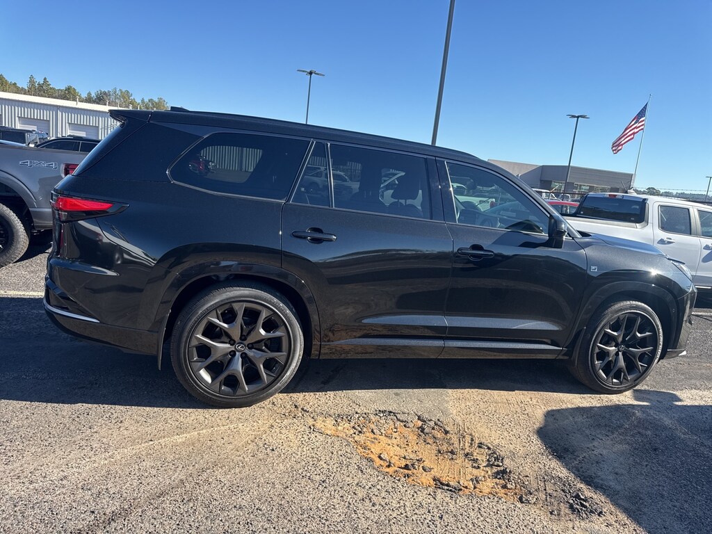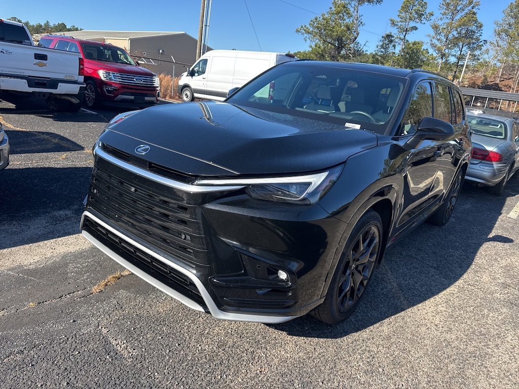 This vehicle comes equipped with 2.4L I4 Turbocharged, 12 Speakers, 3rd row seats: split-bench, 4-Wheel Disc Brakes, ABS brakes, Adaptive suspension, Air Conditioning, Alloy wheels, AM/FM radio, Apple CarPlay/Android Auto, Auto High-beam Headlights, Auto tilt-away steering wheel, Auto-dimming door mirrors, Auto-dimming Rear-View mirror, Automatic temperature control, Brake assist, Bumpers: body-color, Delay-off headlights, Driver door bin, Driver vanity mirror, Dual front impact airbags, Dual front side impact airbags, Electronic Stability Control, Emergency communication system: Safety Connect (10-year trial), Exterior Parking Camera Rear, Four wheel independent suspension, Front anti-roll bar, Front Bucket Seats, Front Center Armrest, Front dual zone A/C, Front fog lights, Front reading lights, Fully automatic headlights, Garage door transmitter: HomeLink, Heated & Ventilated Front Seats, Heated door mirrors, Heated front seats, Heated rear seats, Illuminated entry, Knee airbag, Leather Shift Knob, Leather steering wheel, Low tire pressure warning, Memory seat, Navigation system: Drive Connect Cloud Navigation (3-year trial subscription included), NuLuxe Seat Trim, Occupant sensing airbag, Outside temperature display, Overhead airbag, Panic alarm, Passenger door bin, Passenger vanity mirror, Power door mirrors, Power driver seat, Power Liftgate, Power passenger seat, Power steering, Power windows, Radio data system, Radio: Lexus Interface, Rain sensing wipers, Rear air conditioning, Rear anti-roll bar, Rear reading lights, Rear window defroster, Rear window wiper, Reclining 3rd row seat, Remote keyless entry, Security system, Speed control, Speed-sensing steering, Split folding rear seat, Spoiler, Steering wheel memory, Steering wheel mounted audio controls, Telescoping steering wheel, Tilt steering wheel, Traction control, Trip computer, Turn signal indicator mirrors, Variably intermittent wipers, Ventilated front seats, Ventilated rear seats, and Wheels: 22" Split 5-Spoke Alloy.