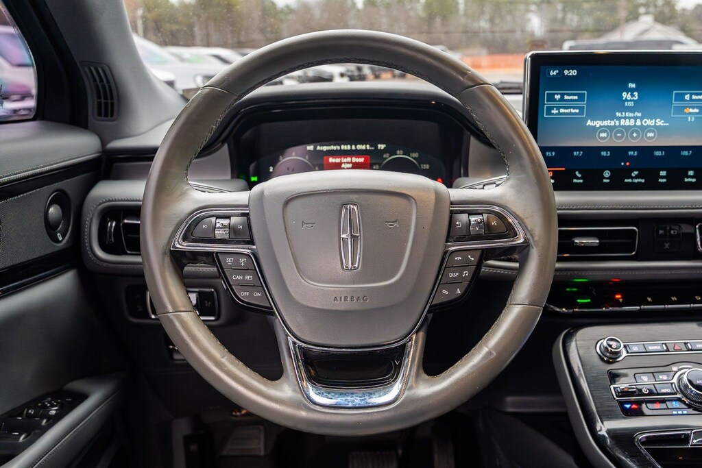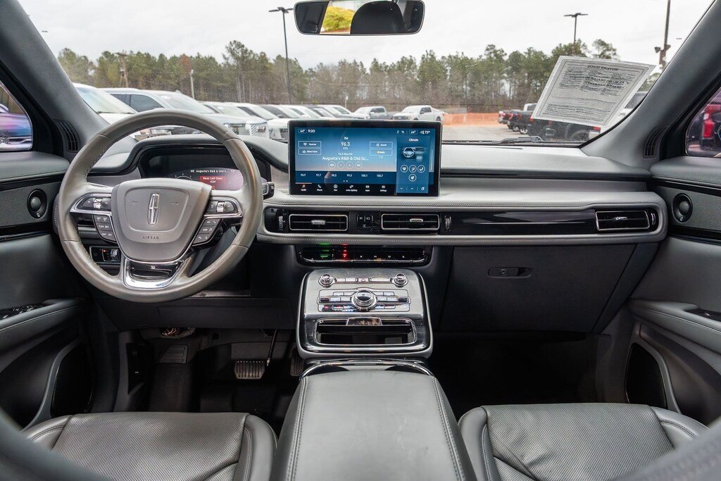 This vehicle comes equipped with Cargo Utility Package (110V/150W AC Power Outlet, Cargo Compartment w/Reversible Mat, Interior Cargo Cover, Molded Plastic Storage Bins, and Rear Cargo Management System), Equipment Group 200A, Monochromatic Package (20" Wheels, Black Lower Grille w/Painted Black Accent Trim, Body-Color Painted Nautilus Badging, Unique Body-Color Mesh Upper Grille, and Wheels: 20" Black Aluminum), 13 Speakers, 3.80 Axle Ratio, 4-Wheel Disc Brakes, ABS brakes, Air Conditioning, Alloy wheels, AM/FM radio: SiriusXM with 360L, Auto High-beam Headlights, Auto tilt-away steering wheel, Auto-dimming door mirrors, Auto-dimming Rear-View mirror, Automatic temperature control, Brake assist, Bumpers: body-color, Compass, Delay-off headlights, Driver door bin, Driver vanity mirror, Dual front impact airbags, Dual front side impact airbags, Electronic Stability Control, Emergency communication system: 911 Assist, Four wheel independent suspension, Front anti-roll bar, Front Bucket Seats, Front Center Armrest w/Storage, Front dual zone A/C, Front reading lights, Fully automatic headlights, Garage door transmitter: HomeLink, Heated door mirrors, Heated front seats, Heated rear seats, Heated steering wheel, Illuminated entry, Knee airbag, Leather steering wheel, Linear Brushed Aluminum Applique, Low tire pressure warning, Memory seat, Navigation System, Occupant sensing airbag, Outside temperature display, Overhead airbag, Overhead console, Panic alarm, Passenger door bin, Passenger vanity mirror, Power door mirrors, Power driver seat, Power Liftgate, Power moonroof: Panoramic Vista Roof, Power passenger seat, Power steering, Power windows, Prem Lthr-Trimmed Heated/Ventilated Captain Seats, Radio data system, Radio: Revel AM/FM/HD Audio System, Rain sensing wipers, Rear anti-roll bar, Rear reading lights, Rear seat center armrest, Rear window defroster, Rear window wiper, Remote keyless entry, Satin Roof Rack Side Rails w/o Crossbars, Security system, Speed control, Speed-sensing steering, Speed-Sensitive Wipers, Split folding rear seat, Spoiler, Steering wheel memory, Steering wheel mounted A/C controls, Steering wheel mounted audio controls, SYNC 4 w/Enhanced Voice Recognition, Tachometer, Telescoping steering wheel, Tilt steering wheel, Traction control, Trip computer, Turn signal indicator mirrors, Variably intermittent wipers, Ventilated front seats, and Wheels: 18" Premium Painted Bright Machined Alum.