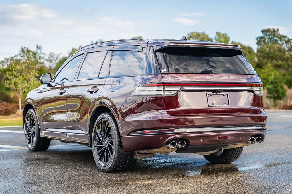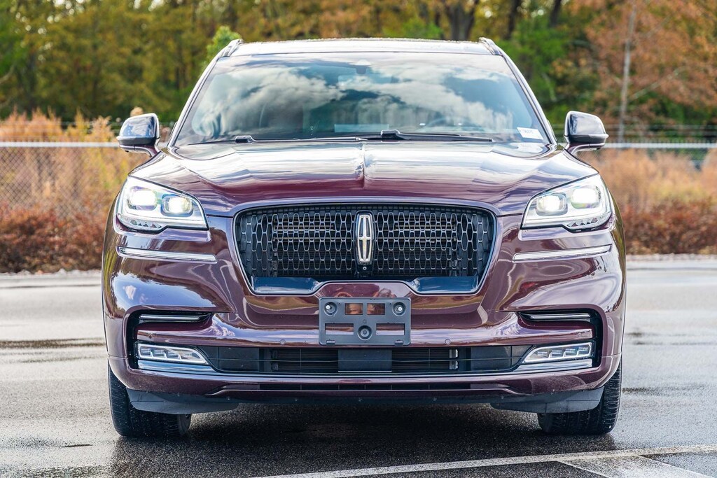 This Aviator Reserve includes Class IV Trailer Tow Package (4-Pin & 7-Pin Connectors, Blind Spot Information System, Class IV Hitch & Wiring, Smart Trailer Tow, and Trailer Sway Control), Dynamic Handling Package (Air Glide Suspension w/Dynamic Lower Entry), Elements Package Plus (Auto Air Refresh, Auto Heated/Ventilated Driver & Passenger Seats, Heated Steering Wheel, Heated VisioBlade Wipers, and Heated/Ventilated 2nd Row Outboard Seats), Equipment Group 201A (Head-Up Display and Phone As A Key), Illumination Package (Adaptive Pixel LED Headlamps, Illuminated Lincoln Star in Grille, and LED Fog Lamps), Jet Package (Black Exterior Elements, Body-Color Exterior Elements, and Wheels: 22" Black Aluminum), Lincoln Co-Pilot360 1.5 Plus (Active Park Assist 2.0, Evasive Steering Assist, Intelligent Adaptive Cruise Control, and Reverse Brake Assist), Luxury Package (30-Way Perfect Position Seats w/Active Motion, Radio: Revel Ultima 3D Audio System w/28 Speakers, and Rear Door Sunshades), 14 Speakers, 3.58 Axle Ratio, 3rd row seats: split-bench, 4-Wheel Disc Brakes, ABS brakes, Adaptive suspension, Air Conditioning, All-Weather 1st & 2nd Row Floor Liners (16A), Alloy wheels, AM/FM radio: SiriusXM, Audio memory, Auto High-beam Headlights, Auto-dimming door mirrors, Auto-dimming Rear-View mirror, Automatic temperature control, Brake assist, Bumpers: body-color, Compass, Console Vault (DIO), Delay-off headlights, Driver door bin, Driver vanity mirror, Dual front impact airbags, Dual front side impact airbags, Electronic Stability Control, Emergency communication system, First Aid Kit, Four wheel independent suspension, Front anti-roll bar, Front Bucket Seats, Front Center Armrest, Front dual zone A/C, Front reading lights, Fully automatic headlights, Garage door transmitter, Hands-Free Liftgate Delete, Heated door mirrors, Heated front seats, Hidden Locking Lug Nut Kit (DIO), HVAC memory, Illuminated entry, Knee airbag, Leather steering wheel, Low tire pressure warning, Memory seat, Navigation System, Occupant sensing airbag, Outside temperature display, Overhead airbag, Overhead console, Panic alarm, Passenger door bin, Passenger vanity mirror, Power door mirrors, Power driver seat, Power Liftgate, Power moonroof: Panoramic Vista Roof, Power passenger seat, Power steering, Power windows, Premium Lthr Heated/Ventilated Fnt Captain's Chairs, Radio data system, Radio: Revel AM/FM Audio System w/14 Speakers, Rain sensing wipers, Rear air conditioning, Rear anti-roll bar, Rear audio controls, Rear dual zone A/C, Rear reading lights, Rear window defroster, Rear window wiper, Remote keyless entry, Roadside Assistance Kit w/Logo (DIO), Security system, SiriusXM Radio, Speed control, Speed-Sensitive Wipers, Split folding rear seat, Spoiler, Steering wheel memory, Steering wheel mounted A/C controls, Steering wheel mounted audio controls, SYNC 3 Communication & Entertainment System, Tachometer, Telescoping steering wheel, Tilt steering wheel, Traction control, Trip computer, Turn signal indicator mirrors, Variably intermittent wipers, and Wheels: 20" Bright-Machined Aluminum . While every effort has been made to ensure display of accurate data, the vehicle listings within this web site may not reflect all accurate vehicle items. All Inventory listed is subject to prior sale. The vehicle photo displayed may be an example only. Pricing throughout the web site does not include any options that may have been installed at the dealership. Please see the dealer for details. Vehicles may be in transit or currently in production. Some vehicles are shown with optional equipment. See the actual vehicle for complete accuracy of features, options & pricing. Because of the numerous possible combinations of vehicle models, styles, colors and options, the vehicle pictures on this site may not match your vehicle exactly; however,