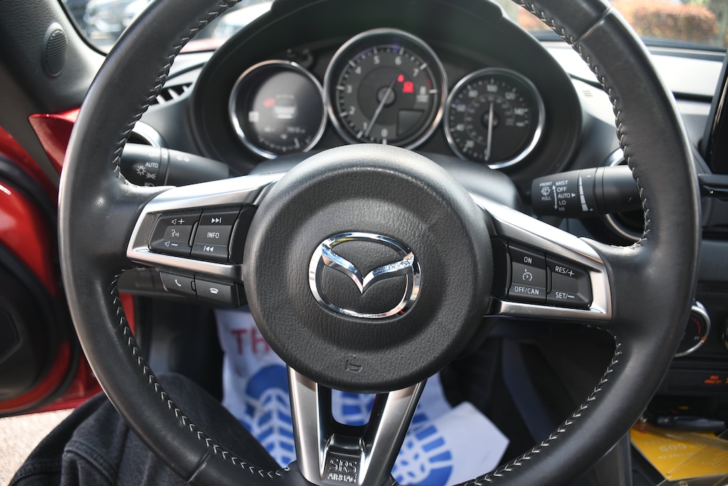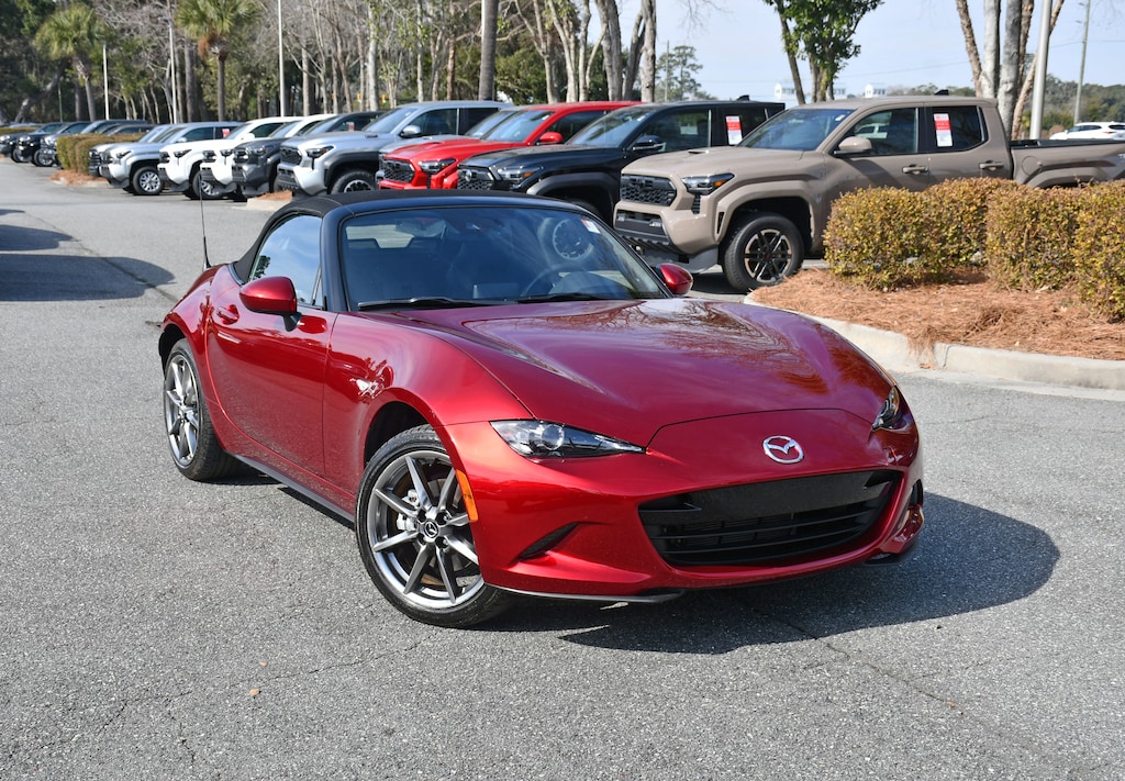 ***Stokes Toyota Hilton Head*** 2023 Mazda Miata MX-5 Miata Grand Touring in Soul Red Crystal Metallic, Factory Equipped With: Leather Seats, Power Windows, Power Locks, Cruise Control, Remote Keyless Entry, Integrated Back Up Camera, Alloy Wheels, 9 Speakers, ABS brakes, Air Conditioning, AppLink/Apple CarPlay and Android Auto, Auto High-beam Headlights, Auto-dimming Rear-View mirror, Automatic temperature control, Bumpers: body-color, Delay-off headlights, Dual front impact airbags, Dual front side impact airbags, Front Bucket Seats, Front Center Armrest, Glass rear window, Heated door mirrors, Low tire pressure warning, MAZDA CONNECT, Navigation System, Panic alarm, Power door mirrors, Power steering, Radio: Bose Audio System w/AudioPilot, Soul Red Crystal Paint Charge, Speed control, Steering wheel mounted audio controls, Tilt steering wheel, Trip computer, Wheels: 17" x 7" Dark Silver Aluminum Alloy. CARFAX One-Owner.