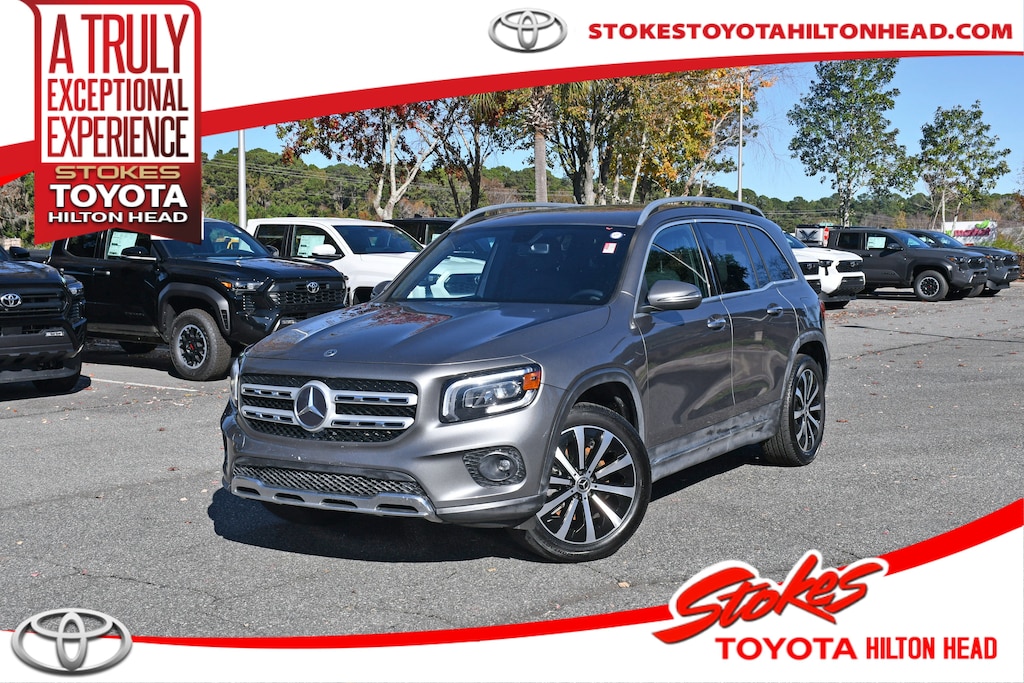 ***Stokes Toyota Hilton Head*** 2021 Mercedes-Benz GLB 250 in Mountain Gray Metallic, Factory Equipped With: Leather Seats, Power Windows, Power Locks, Cruise Control, Remote Keyless Entry, 8-Way Power Drivers Seat, Heated Leather, 4-Way Power Lumbar Support, 8 Speakers, 8-Way Power Front Seats w/Memory, ABS brakes, Air Conditioning, AM/FM radio, Android Auto®, Apple CarPlay®, Automatic temperature control, Delay-off headlights, Dual front impact airbags, Dual front side impact airbags, Exterior Parking Camera Rear, Front Bucket Seats, Front Center Armrest, Front fog lights, Fully automatic headlights, MB-Tex Upholstery, Panic alarm, Power driver seat, Power Liftgate, Power steering, Premium audio system: MBUX, Rain sensing wipers, Rear fog lights, Rear window wiper, Smartphone Integration, Steering wheel mounted audio controls, Telescoping steering wheel, Tilt steering wheel, Variably intermittent wipers, Wheels: 18" Twin 5-Spoke. Clean CARFAX.