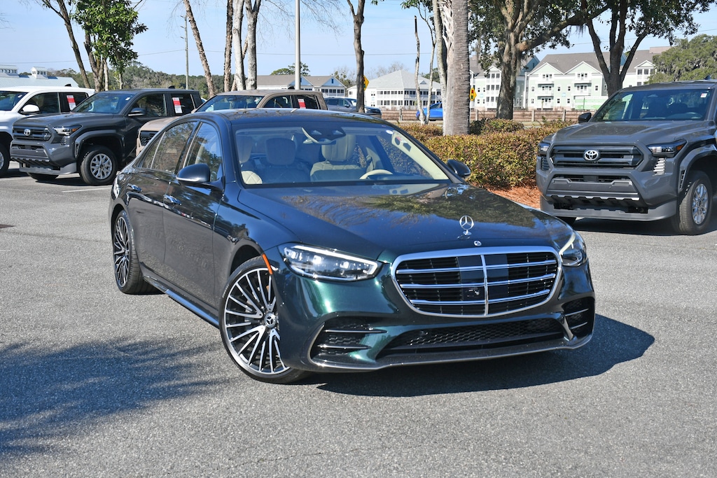 ***Stokes Toyota Hilton Head*** Local Trade** Loaded** 2023 Mercedes-Benz S-Class S 500 in Emerald Green Metallic, factory Equipped With. 3D Instrument Cluster, 3D Technology Package, 4.5 Degree Rear Axle Steering, ABS brakes, Air Conditioning, AMG® Line Exterior (772), Auto High-beam Headlights, Automatic temperature control, Burmester® 3D Surround Sound System, Child-Seat-Sensing Airbag, Delay-off headlights, Dual front impact airbags, Dual front side impact airbags, Front ENERGIZING Package, Head restraints memory, Heated Front Armrests, Heated Rear Armrests, Heated Steering Wheel, Low tire pressure warning, MBUX Augmented Reality Head-Up Display, Memory Rear Seats, Memory seat, Power moonroof: Panorama, Power Rear Seats, Rear Seat Heating, Ventilated Rear Seats, Warmth & Comfort Package. Clean CARFAX.