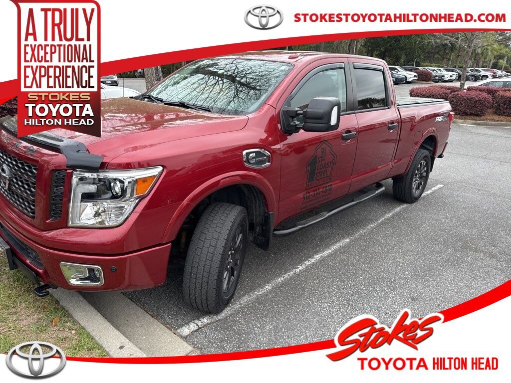 ***Stokes Toyota Hilton Head*** Navigation** 2019 Nissan Titan XD Titan XD PRO-4X in Cayenne Red Metallic, factory Equipped With. 110V Bed Outlet, Electronic Locking Tailgate, Fender Premium Audio w/12 Speakers, Front & Rear Parking Sensors, LED Under Rail Bed Lighting, Power Slide Rear Window w/Defogger, PRO-4X Utility Package, Rear Utility Bed Step, Tailgate Area Illumination, Utilitrack System w/4 Tie-Down Cleats.