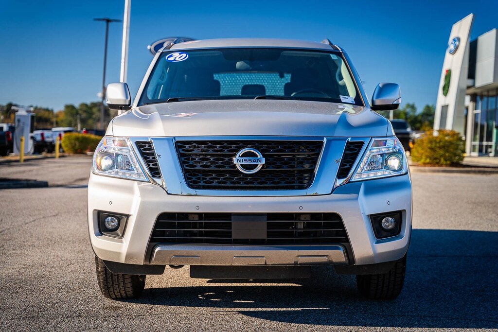 This vehicle comes equipped with Driver Package (Auto-Dimming Interior Rear-View Mirror, Front Fog Lights, Power 60/40 3rd Row Seat, Power Lift Gate, and Trailer Towing Harness), Ford Blue Certified Eligible Certified, 13 Speakers, 18" Alloy Wheels, 3rd Row Carpeted Floor Mats - Bench Seat, 3rd row seats: split-bench, 4-Wheel Disc Brakes, ABS brakes, Air Conditioning, Alloy wheels, AM/FM radio: SiriusXM, Anti-whiplash front head restraints, Auto-leveling suspension, Automatic temperature control, Axle Ratio: 2.94, Brake assist, Bumpers: body-color, CD player, Cloth Seat Trim, Delay-off headlights, Driver door bin, Driver vanity mirror, Dual front impact airbags, Dual front side impact airbags, DVD-Audio, Electronic Stability Control, Emergency communication system: NissanConnect Services, Four wheel independent suspension, Front anti-roll bar, Front Bucket Seats, Front Center Armrest, Front dual zone A/C, Front reading lights, Fully automatic headlights, Heated door mirrors, Heated Front Bucket Seats, Heated front seats, Illuminated entry, Leather Shift Knob, Low tire pressure warning, Navigation System, Occupant sensing airbag, Outside temperature display, Overhead airbag, Overhead console, Panic alarm, Passenger door bin, Passenger vanity mirror, Power door mirrors, Power driver seat, Power passenger seat, Power steering, Power windows, Radio data system, Radio: AM/FM/SXM/CD/MP3/HD, Rear air conditioning, Rear anti-roll bar, Rear reading lights, Rear seat center armrest, Rear window defroster, Rear window wiper, Reclining 3rd row seat, Remote keyless entry, Security system, Speed control, Speed-sensing steering, Speed-Sensitive Wipers, Split folding rear seat, Spoiler, Steering wheel mounted audio controls, Tachometer, Telescoping steering wheel, Tilt steering wheel, Traction control, Trip computer, Turn signal indicator mirrors, Variably intermittent wipers, and Voltmeter.