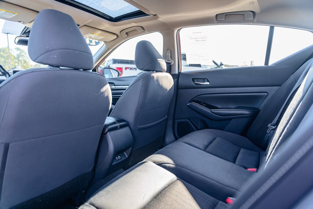 This vehicle comes equipped with SV Premium Package (Electronic Parking Brake w/Auto-Hold, Exhaust Finishers, Heated Front Seats, Heated Outside Mirrors w/LED Turn Signal Indicators, Intelligent Lane Intervention (I-LI), Leather Shift Knob, Leather Steering Wheel, ProPILOT Assist, and Single Panel Moonroof), CVT with Xtronic, 17" Machined Alloy Wheels, 4-Wheel Disc Brakes, 6 Speakers, ABS brakes, Air Conditioning, Alloy wheels, AM/FM radio: SiriusXM, Auto High-beam Headlights, Blind Spot Warning, Body-Colored Splash Guards, Brake assist, Bumpers: body-color, Chrome Bumper Protector, Cloth Seat Trim, Delay-off headlights, Driver door bin, Driver vanity mirror, Dual front impact airbags, Dual front side impact airbags, Electronic Stability Control, Emergency Roadside Kit Delete, Floor Mats/Trunk Mat/Hideaway Net, Four wheel independent suspension, Front anti-roll bar, Front Bucket Seats, Front Center Armrest, Front reading lights, Fully automatic headlights, Illuminated entry, Knee airbag, Low tire pressure warning, NissanConnect featuring Apple CarPlay and Android Auto, Occupant sensing airbag, Outside temperature display, Overhead airbag, Overhead console, Panic alarm, Passenger door bin, Passenger vanity mirror, Power door mirrors, Power driver seat, Power steering, Power windows, Radio data system, Radio: AM/FM Audio System, Rear anti-roll bar, Rear Parking Sensors, Rear reading lights, Rear seat center armrest, Rear side impact airbag, Rear window defroster, Remote keyless entry, Security system, Speed control, Speed-sensing steering, Speed-Sensitive Wipers, Split folding rear seat, Sport steering wheel, Steering wheel mounted audio controls, Tachometer, Telescoping steering wheel, Tilt steering wheel, Traction control, Trip computer, Trunk Organizer Tray, and Variably intermittent wipers.