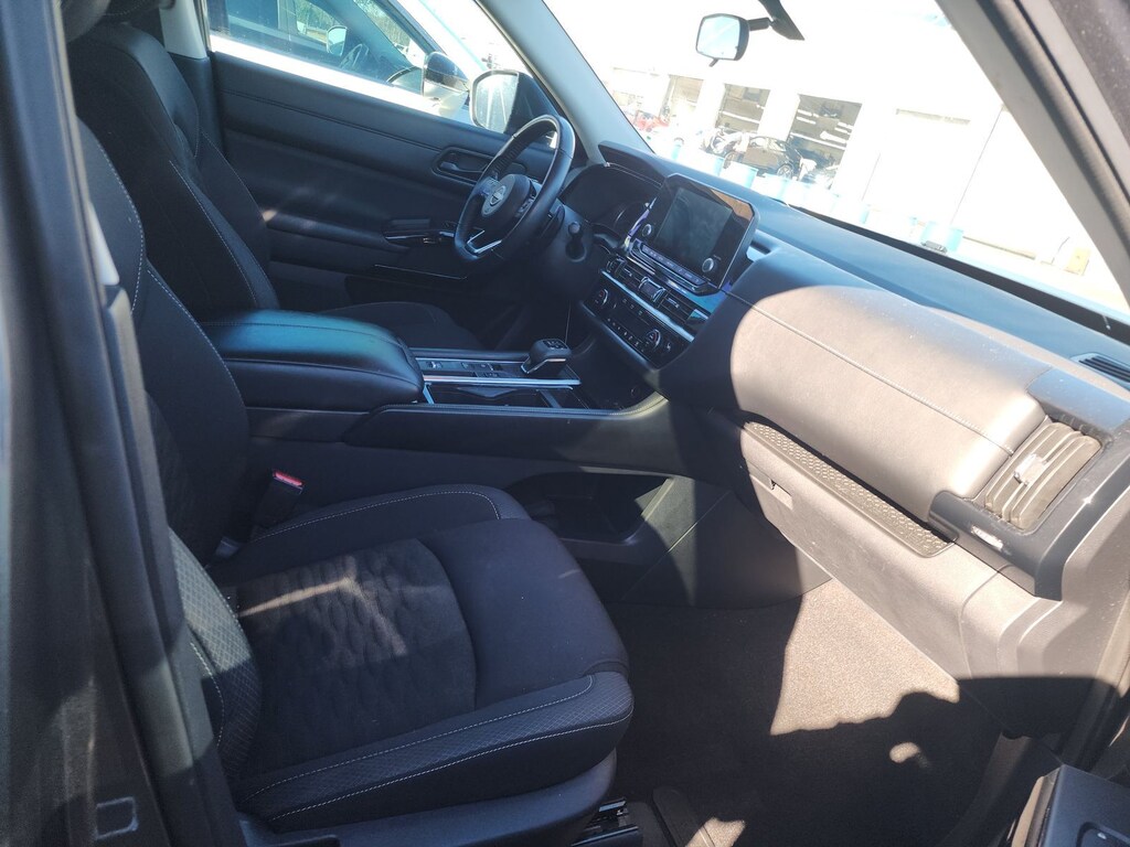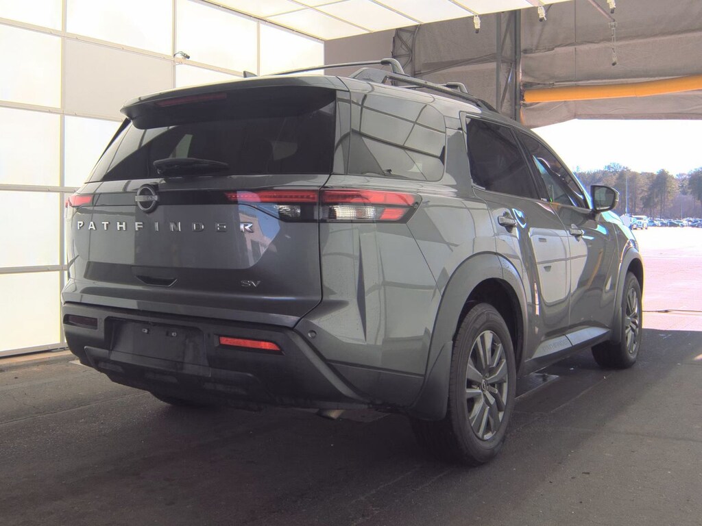 This Pathfinder SV includes Lighting Package (N92) (Illuminated Kick Plate and Welcome Lighting), SV Premium Package (2nd-Row Captain Chairs, 2nd-Row Removable Center Console, Panoramic Moonroof, Power Liftgate w/Position Memory, and Tow Hitch Receiver & Harness), Tow Delete Package (Delete Tow Hitch Receiver & Harness), 18" Painted Alloy Wheels, 3rd row seats: bench, 4-Wheel Disc Brakes, 6 Speakers, ABS brakes, Air Conditioning, Alloy wheels, AM/FM radio: SiriusXM, Auto High-beam Headlights, Automatic temperature control, Axle Ratio: 4.334, Black Splash Guards (Set of 4), Brake assist, Bumpers: body-color, Captain's Chairs Carpeted Floor Mats (Set of 4), Cloth Seating Surfaces, Cross Bars, Delay-off headlights, Driver door bin, Driver vanity mirror, Dual front impact airbags, Dual front side impact airbags, Electronic Stability Control, Emergency communication system: NissanConnect Services, Four wheel independent suspension, Front anti-roll bar, Front Bucket Seats, Front Center Armrest, Front dual zone A/C, Front reading lights, Fully automatic headlights, Heated door mirrors, Heated Front Bucket Seats, Heated front seats, Illuminated entry, Knee airbag, Leather steering wheel, Low tire pressure warning, NissanConnect featuring Apple CarPlay and Android Auto, Occupant sensing airbag, Outside temperature display, Overhead airbag, Overhead console, Panic alarm, Passenger door bin, Passenger vanity mirror, Power door mirrors, Power driver seat, Power steering, Power windows, Radio data system, Radio: AM/FM Audio System w/NissanConnect, Rear air conditioning, Rear anti-roll bar, Rear Parking Sensors, Rear reading lights, Rear seat center armrest, Rear side impact airbag, Rear window defroster, Rear window wiper, Reclining 3rd row seat, Remote keyless entry, Security system, Speed control, Speed-sensing steering, Split folding rear seat, Spoiler, Steering wheel mounted audio controls, Tachometer, Telescoping steering wheel, Tilt steering wheel, Traction control, Trip computer, Turn signal indicator mirrors, and Variably intermittent wipers . While every effort has been made to ensure display of accurate data, the vehicle listings within this web site may not reflect all accurate vehicle items. All Inventory listed is subject to prior sale. The vehicle photo displayed may be an example only. Pricing throughout the web site does not include any options that may have been installed at the dealership. Please see the dealer for details. Vehicles may be in transit or currently in production. Some vehicles are shown with optional equipment. See the actual vehicle for complete accuracy of features, options & pricing. Because of the numerous possible combinations of vehicle models, styles, colors and options, the vehicle pictures on this site may not match your vehicle exactly; however, it will match as closely as possible. Some vehicle images shown are stock photos and may not reflect your exact choice of vehicle, color, trim and specification. Not responsible for pricing or typographical errors. Virtual Inventory, Available Configurations and In-Transit inventory contains vehicles that have not actually been manufactured. These vehicles show consumers sample vehicles that may be available. Pricing, Options, Color, and other data pertaining to these vehicles are provided for example only. All information pertaining to these vehicles should be independently verified through the dealer. 20/27 City/Highway MPG