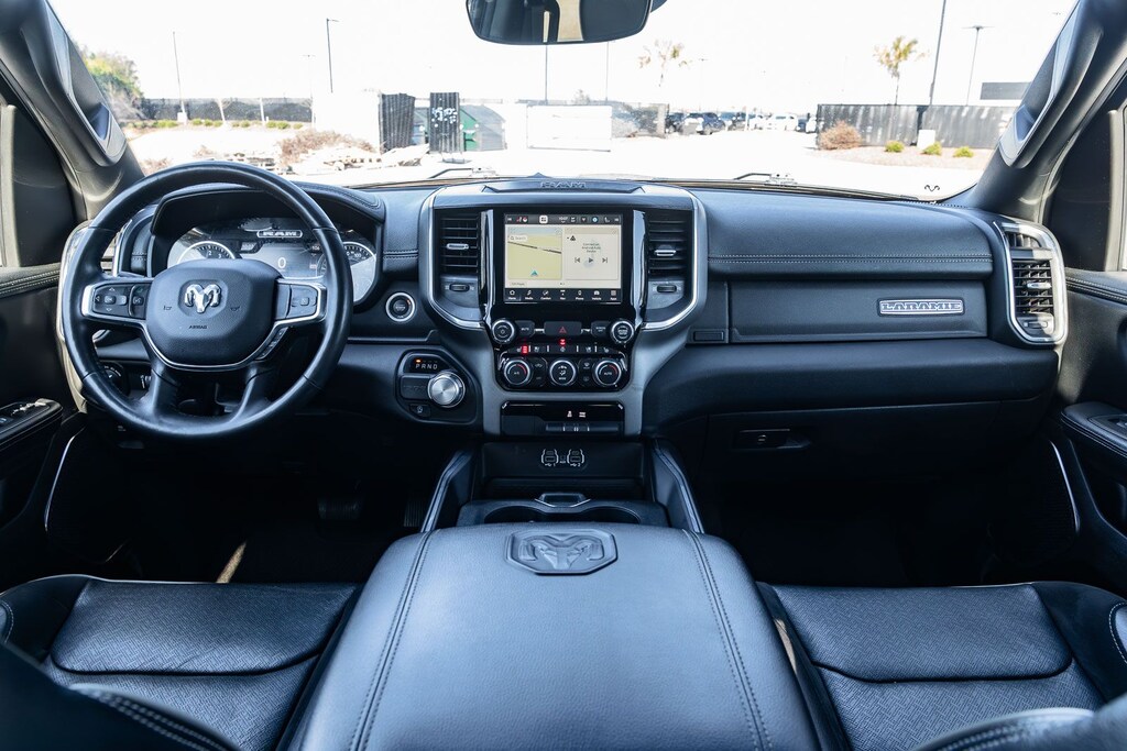This 1500 Laramie includes Quick Order Package 27H Laramie, 10 Speakers, 3 Rear Seat Head Restraints, 3.21 Rear Axle Ratio, 4 Way Front Headrests, 4-Wheel Disc Brakes, 48V Belt Starter Generator, 4G LTE Wi-Fi Hot Spot, ABS brakes, Air Conditioning, Alloy wheels, AM/FM radio: SiriusXM with 360L, Apple CarPlay, Apple CarPlay/Android Auto, Audio memory, Auto-dimming door mirrors, Auto-Dimming Exterior Driver Mirror, Auto-dimming Rear-View mirror, Automatic temperature control, Brake assist, Bumpers: chrome, Chrome Exterior Mirrors, Compass, Connected Travel & Traffic Services, Connectivity - US/Canada, Convex Wide-Angle Exterior Mirror Insert, Delay-off headlights, Driver door bin, Driver Seat Memory, Driver vanity mirror, Dual front impact airbags, Dual front side impact airbags, Electronic Stability Control, Exterior Mirrors Courtesy Lamps, Exterior Mirrors w/Heating Element, Exterior Mirrors w/Memory, Exterior Mirrors w/Supplemental Signals, Exterior Parking Camera Rear, For Details, Visit DriveUconnect.com, For More Info, Call 800-643-2112, Front anti-roll bar, Front Center Armrest w/Storage, Front dual zone A/C, Front fog lights, Front License Plate Bracket, Front reading lights, Front Seat Back Map Pockets, Front wheel independent suspension, Fully automatic headlights, Garage door transmitter, Global Telematics Box Module (TBM), Google Android Auto, GPS Navigation, HD Radio, Heated door mirrors, Heated Front Seats, Heated front seats, Heated Steering Wheel, Heated steering wheel, Illuminated entry, Integrated Voice Command w/Bluetooth, Leather steering wheel, Leather Trim 40/20/40 Bench Seat, Low tire pressure warning, Manufacturer's Statement of Origin, Memory seat, Navigation System, Occupant sensing airbag, Outside temperature display, Overhead airbag, Overhead console, Panic alarm, Passenger door bin, Passenger vanity mirror, Power 2-Way Driver Lumbar Adjust, Power 2-Way Passenger Lumbar Adjust, Power 8-Way Driver & Passenger Seats, Power door mirrors, Power driver seat, Power passenger seat, Power steering, Power windows, Power-Folding Mirrors, Radio data system, Radio: Uconnect 5 Nav w/8.4" Display, RAM Grille Badge - Chrome, Rear 60/40 Folding Seat, Rear anti-roll bar, Rear seat center armrest, Rear step bumper, Remote keyless entry, Security system, SiriusXM Radio Service, SiriusXM w/360L, Speed control, Split folding rear seat, Steering wheel mounted audio controls, Tachometer, Telescoping steering wheel, Tilt steering wheel, Traction control, Trip computer, Turn signal indicator mirrors, Variably intermittent wipers, Ventilated Front Seats, Ventilated front seats, Voltmeter, Wheels: 18" x 8" Aluminum Base Painted, and Wheels: 20" x 9" Premium Paint/Polished . While every effort has been made to ensure display of accurate data, the vehicle listings within this web site may not reflect all accurate vehicle items. All Inventory listed is subject to prior sale. The vehicle photo displayed may be an example only. Pricing throughout the web site does not include any options that may have been installed at the dealership. Please see the dealer for details. Vehicles may be in transit or currently in production. Some vehicles are shown with optional equipment. See the actual vehicle for complete accuracy of features, options & pricing. Because of the numerous possible combinations of vehicle models, styles, colors and options, the vehicle pictures on this site may not match your vehicle exactly; however, it will match as closely as possible. Some vehicle images shown are stock photos and may not reflect your exact choice of vehicle, color, trim and specification. Not responsible for pricing or typographical errors. Virtual Inventory, Available Configurations and In-Transit inventory contains vehicles that have not actually been manufactured. These vehicles show consumers sample vehicles that may be available. Pricing, Options, Color, and o