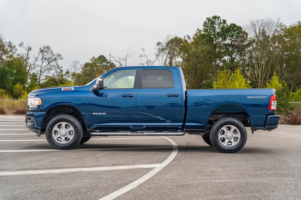 This 2500 Big Horn includes Bed Utility Group (LED Bed Lighting, MOPAR Deployable Bed Step, and MOPAR Spray In Bedliner), Level 1 Equipment Group (2 Way Rear Headrest Seat, 2nd Row In Floor Storage Bins, 4 Way Front Headrests, 40/20/40 Split Bench Seat, 4G LTE Wi-Fi Hot Spot, 8.4" Touchscreen Display, Apple CarPlay, Auto Power-Folding Mirrors, Big Horn IP Badge, Black Exterior Mirrors, Bluetooth Handsfree Phone & Audio, Center Hub, Connectivity - US/Canada, Dual Glove Boxes, Exterior Mirrors Courtesy Lamps, Exterior Mirrors w/Heating Element, Exterior Mirrors w/Supplemental Signals, Foam Bottle Insert (Door Trim Panel), Footwell Courtesy Lamp, For Details, Visit DriveUconnect.com, For More Info, Call 800-643-2112, Forward & Reverse Utility Lights, Front Armrest w/Cupholders, Front Center Seat Cushion Storage, Front Fog Lamps, Front Seat Back Map Pockets, Global Telematics Box Module (TBM), Glove Box Lamp, Google Android Auto, GPS Antenna Input, Integrated Center Stack Radio, Integrated Voice Command w/Bluetooth, Leather Wrapped Steering Wheel, Locking Lower Glove Box, Manual Adjust 4-Way Front Passenger Seat, Mirror Running Lights, Power 2-Way Driver Lumbar Adjust, Power Adjust 8-Way Driver Seat, Power Adjust Mirrors, Power Adjustable Convex Aux Mirrors, Power Heated Fold Telescope Mirrors, Power Telescoping Mirrors, Rear 60/40 Folding Seat, Rear Dome w/On/Off Switch Lamp, Remote USB Port - Charge Only, Selectable Tire Fill Alert, SiriusXM Radio Service, SiriusXM Satellite Radio, Steering Wheel Mounted Audio Controls, Storage Tray, and Wheels: 18" x 8.0" Polished Aluminum), Protection Group (Tow Hooks), Quick Order Package 2GZ Big Horn, Sport Appearance Package (Black Interior Accents, Body Color Door Handles, Body Color Grille Surround, Painted Front Bumper, Painted Rear Bumper, ParkSense Front/Rear Park Assist System, and Sport Decal), 12" Touchscreen Display, 3.73 Axle Ratio, 4-Wheel Disc Brakes, 6 Speakers, 9 Alpine Speakers w/Subwoofer, ABS brakes, Active Noise Control System, Air Conditioning, Air Conditioning ATC w/Dual Zone Control, Alexa Built-In, All R1 High Radios, All Radio Equipped Vehicles, Brake assist, Bumpers: chrome, Center Stack Storage Drawer, Chrome Flat Cab-Length Side Steps, Cloth 40/20/40 Bench Seat, Compass, Connected Travel & Traffic Services, Delay-off headlights, Disassociated Touchscreen Display, Driver door bin, Dual front impact airbags, Dual front side impact airbags, Electronic Stability Control, Electronically Controlled Throttle, Emergency communication system: SiriusXM Guardian, Front anti-roll bar, Front Center Armrest w/Storage, Front License Plate Bracket, Front reading lights, Fully automatic headlights, GPS Navigation, HD Radio, Heated door mirrors, Illuminated entry, Low tire pressure warning, Manual Adjust 4-Way Driver Seat, Manufacturer's Statement of Origin, Occupant sensing airbag, Off-Road Information Pages, Outside temperature display, Overhead airbag, Overhead console, Panic alarm, ParkView Rear Back-Up Camera, Passenger door bin, Passenger vanity mirror, Power door mirrors, Power steering, Power windows, Premium Cloth 40/20/40 Bench Seat (DISC), Radio data system, Radio: Uconnect 3 w/5" Display, Radio: Uconnect 5 Nav w/12.0" Display, Radio: Uconnect 5 W w/8.4" Display, Rear anti-roll bar, Rear Folding Seat, Rear seat center armrest, Rear step bumper, Remote keyless entry, SiriusXM w/360L, Speed control, Tachometer, Tilt steering wheel, Tip Start, Traction control, Trailer Tow Pages, Trip computer, Turn signal indicator mirrors, Variably intermittent wipers, Voltmeter, and Wheels: 18" x 8.0" Steel Chrome Clad . While every effort has been made to ensure display of accurate data, the vehicle listings within this web site may not reflect all accurate vehicle items. All Inventory listed is subject to prior sale. The vehicle photo displayed may be an example only. Pricing throughout the web site doe