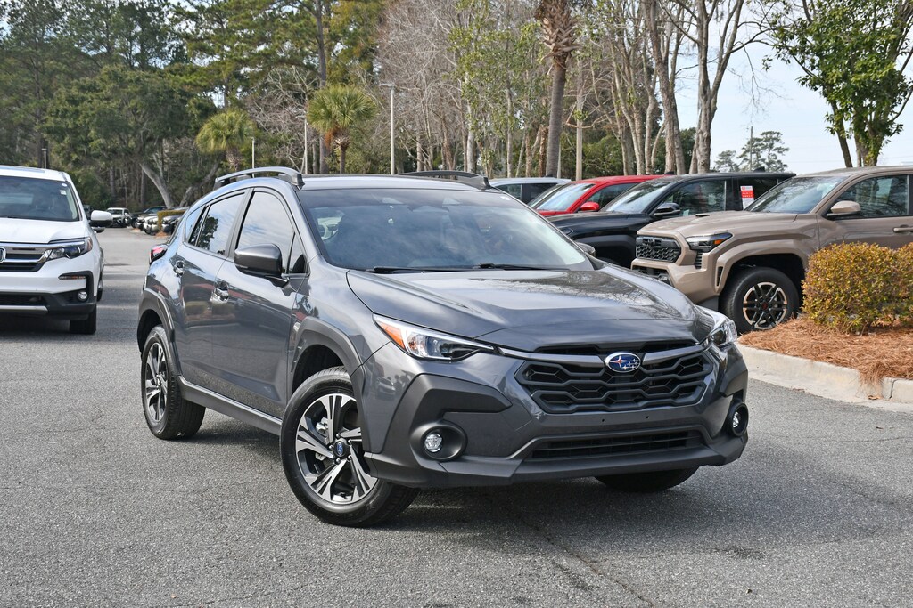 ***Stokes Toyota Hilton Head*** 2024 Subaru Crosstrek Premium in Magnetite Gray Metallic, Factory Equipped With: Power Windows, Power Locks, Cruise Control, Remote Keyless Entry, 8-Way Power Drivers Seat, Integrated Back Up Camera, Alloy Wheels, 6 Speakers, ABS brakes, Air Conditioning, Alloy wheels, Automatic temperature control, Bumpers: body-color, Driver door bin, Dual front impact airbags, Dual front side impact airbags, Front Bucket Seats, Front Center Armrest, Front dual zone A/C, Low tire pressure warning, Panic alarm, Power door mirrors, Power steering, Power windows, Rear window wiper, Speed control, Steering wheel mounted audio controls, Tilt steering wheel, Trip computer, Turn signal indicator mirrors, Variably intermittent wipers. CARFAX One-Owner. Clean CARFAX.