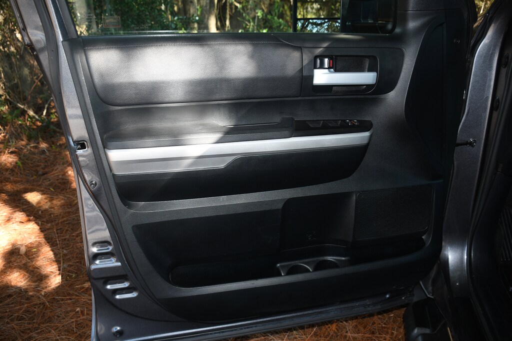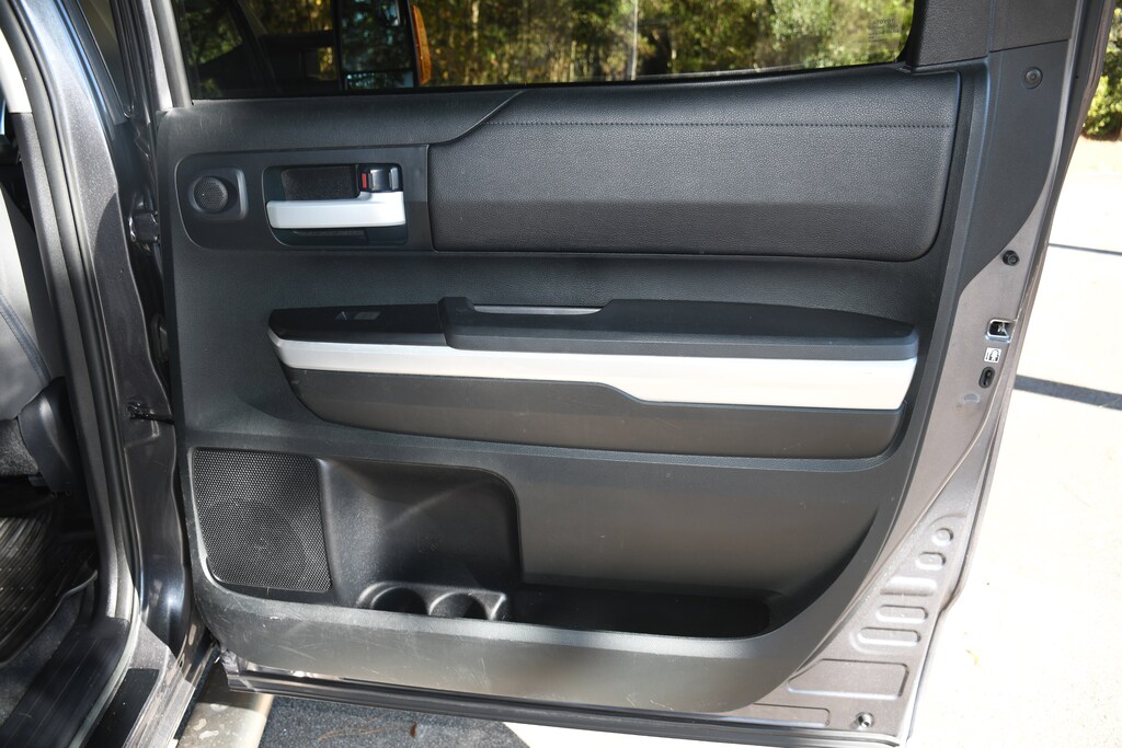 This has been the best truck I have ever driven. 2021 Toyota Tundra SR5 Crew Cab ( Trail Edition package) color is Army Green. The suspension comfortably dampens most bumps and pot holes. The 4 wheel drive works great in the snow. The steering is very lite and easy to turn. In tow/haul, The 5.7L and 6 speed trans pulls my 6000lb trailer with ease. It has a tight turning radius, so backing up my trailer is easy. The interior controls are all easy to reach and intuitive to use. The seats are cloth and comfortable. The interior room in my crew cab is massive. The back seats fold flat to the back wall, leaving a lot of room for hauling things out of the weather. The bed is 5’5” with a dampened tailgate . I have easily hauled plywood and lumber with the tailgate down. I also haul kayaks sticking out out of the bed without a problem. My truck has Toyota safety sense, with that is all of the modern safety features you can imagine. All features, gages and controls are working perfectly. The engine is powerful with some if that V8 engine tone in the cabin. I get an average fuel economy of 15mpg as my daily driver. I also got 18.2 mpg average on a mostly highway trip. I do notice a little body roll/lean when taking turns fast. The halogen headlights and fog lights are good. My truck is stock from Toyota, no changes or additions. This make and model year has impeccable reliability. - 4.0