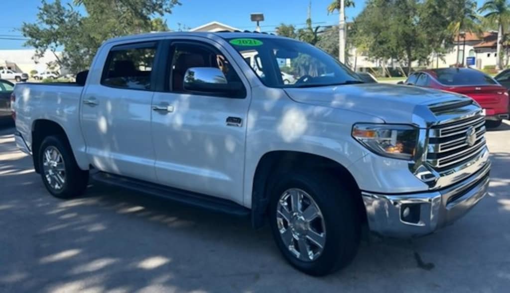4WD, Brown Leather. White 2021 Toyota Tundra 1794 4WD 6-Speed Automatic Electronic i-Force 5.7L V8 DOHC 32V LEVOdometer is 13051 miles below market average! Recent Arrival!**** Stokes Chevrolet is not responsible for any price discrepancies, statements of condition, or incorrect equipment listed on a vehicle. Vehicles may have minor road chips, light scratches, wheel scuffs, etc. Depending on the age of the vehicle, normal wear and tear should be anticipated. We may or may not have all the keys and floor mats. We will be happy to obtain extra oneâs for you at our dealer cost. Price does include all applicable rebates and incentives offered by manufacturer and/or finance source and $1000 trade assistance, must have trade to qualify. Price does not include dealer addendum *Reconditioning/UCI. The full cash price charged at any dealership depends on many factors, including all products and services bought with the vehicle. It is the customer's sole responsibility to verify the existence and condition of any equipment listed. Neither the dealership nor dealer website provider are responsible for misprints on prices or equipment. This site, and all information and materials appearing on it, are presented to the user as is without warranty of any kind, either express or implied. Customers must mention this advertisement to receive the advertised price. While great effort is made to ensure the accuracy of the information on this site, errors do occur so please verify information with a customer service rep. This is easily done by calling us at (843)761-8084 or by visiting us at the dealership. Anyone that submits a form online that includes a phone number has agreed to all forms of contact, which would include, calling and texting.. All vehicles are subject to prior sale. Prices shown do not tax, tag, registration, title, license charges and $599.50 Closing Fee on all vehicles. Vehicles shown at different locations are not currently in our inventory (Not in Stock) but can be made available to you at our location within a reasonable date from the time of your request, not to exceed one week.
